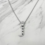 Alphabet J Sterling Silver Necklace with 3 Black Cubic Zirconia Stones