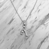 Alphabet K Sterling Silver Necklace with 3 Black Cubic Zirconia Stones
