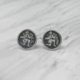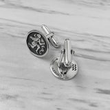 Aquarius Zodiac Oxidized Sterling Silver Cufflinks