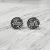 Aries Cufflinks: Depicting the dynamic stance of the Ram, the Aries symbol stands out on sterling silver cufflinks enhanced by an oxidized finish that adds contrast and boldness to the design. This Aries zodiac sign represents courage and leadership.