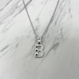 Alphabet B Sterling Silver Necklace with 3 Black Cubic Zirconia Stones