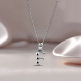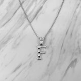 Alphabet F Sterling Silver Necklace with 3 Black Cubic Zirconia Stones