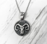 Aries Zodiac Necklace for Men: Elevate your style with our Sterling Silver Aries Zodiac Pendant. This stunning piece, crafted with intricate details, represents the first sign of the zodiac, Aries, which represents the fiery energy and passionate nature of Aries.
