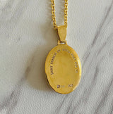 Saint Francis of Assisi necklace, beautifully crafted with very intricate detail of Saint, Cross, Dog and a Bird. Saint Francis is known for his love for Animals and patronage to natural environment.