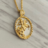 18K Gold Vermeil Thorn Frame Two Tone Saint George Necklace