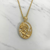 Sterling Silver Partially Gold Plated Thorn Frame Two Tone Saint Sebastian Necklace