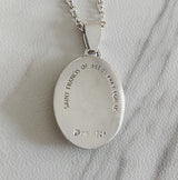 Saint Francis of Assisi necklace, beautifully crafted with very intricate detail of Saint, Cross, Dog and a Bird. Saint Francis is known for his love for Animals and patronage to natural environment.