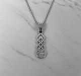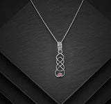 This delicate sterling silver Celtic pendant whispers elegance with its intricate knotwork. The flowing lines intertwine in a timeless design, accented by a pink cubic zirconia stone.