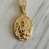 Saint Francis of Assisi necklace, beautifully crafted with very intricate detail of Saint, Cross, Dog and a Bird. Saint Francis is known for his love for Animals and patronage to natural environment.