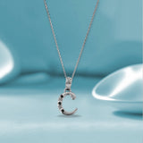 Alphabet C Sterling Silver Necklace with 3 Black Cubic Zirconia Stones