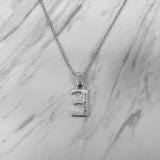 Alphabet E Sterling Silver Necklace with 3 Black Cubic Zirconia Stones